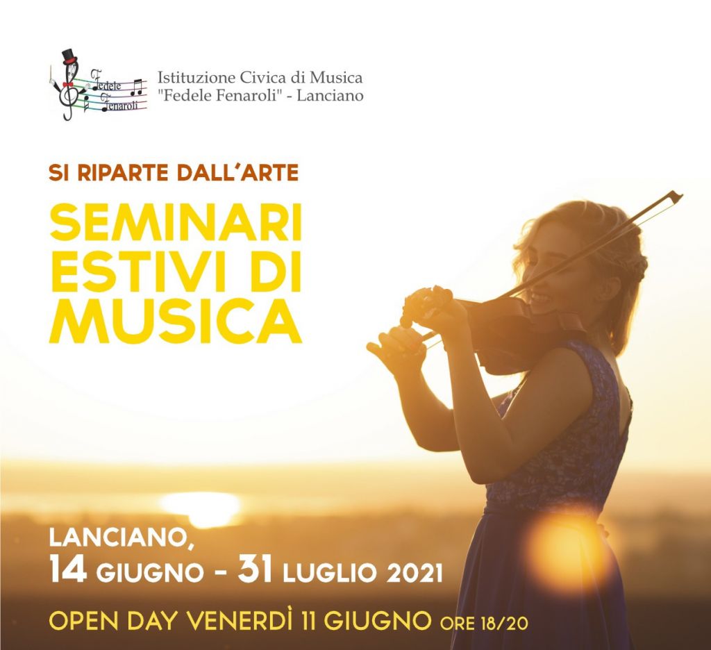 L’Istituzione Civica di Musica “Fedele Fenaroli” di Lanciano organizza per il periodo dal 14 giugno al 31 luglio 2021, presso la Scuola Civica di Musica - Parco delle Arti Musicali di Lanciano, una serie di seminari (prevalentemente nelle aree esterne) destinati ad allievi di tutte le età desiderosi di affrontare un coinvolgente percorso di musica d’insieme.